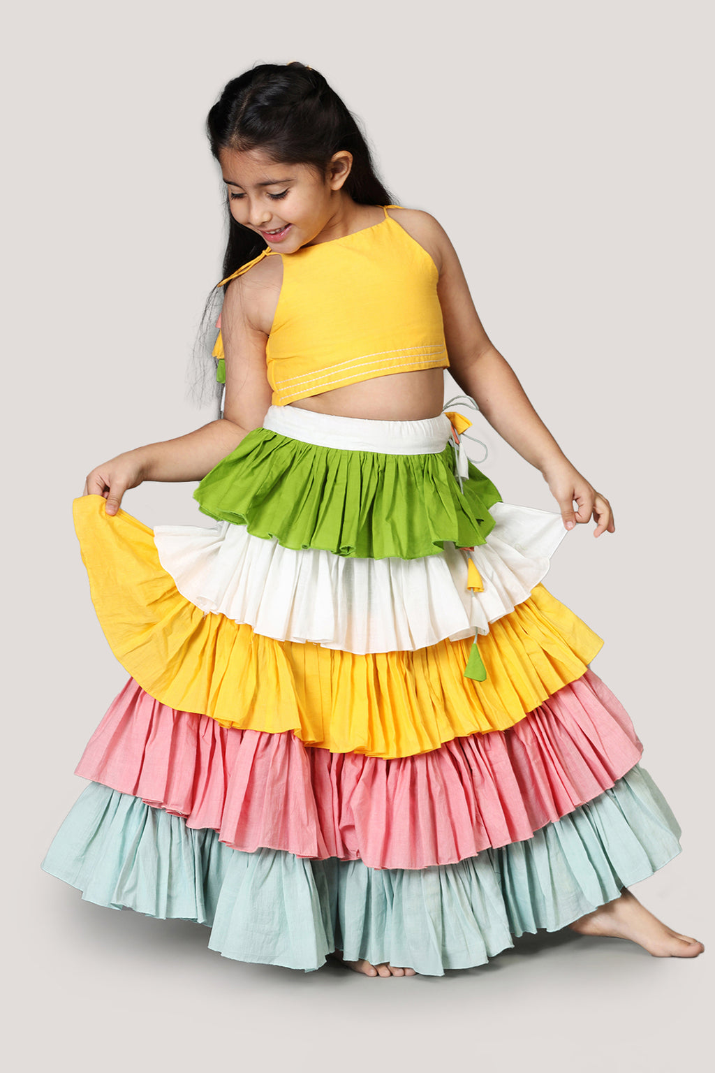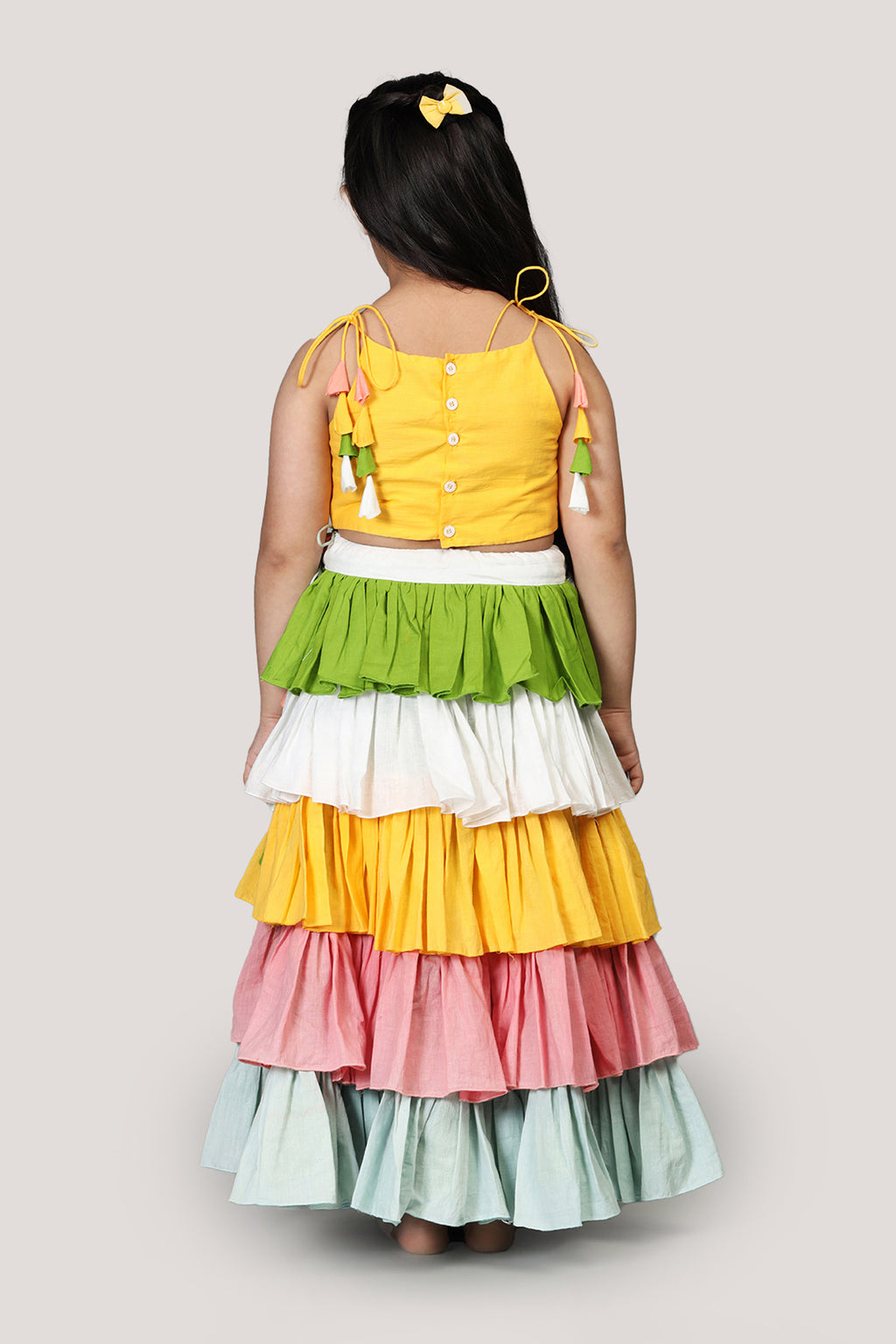 Multicolor Layered Lehenga with Spaghetti Blouse