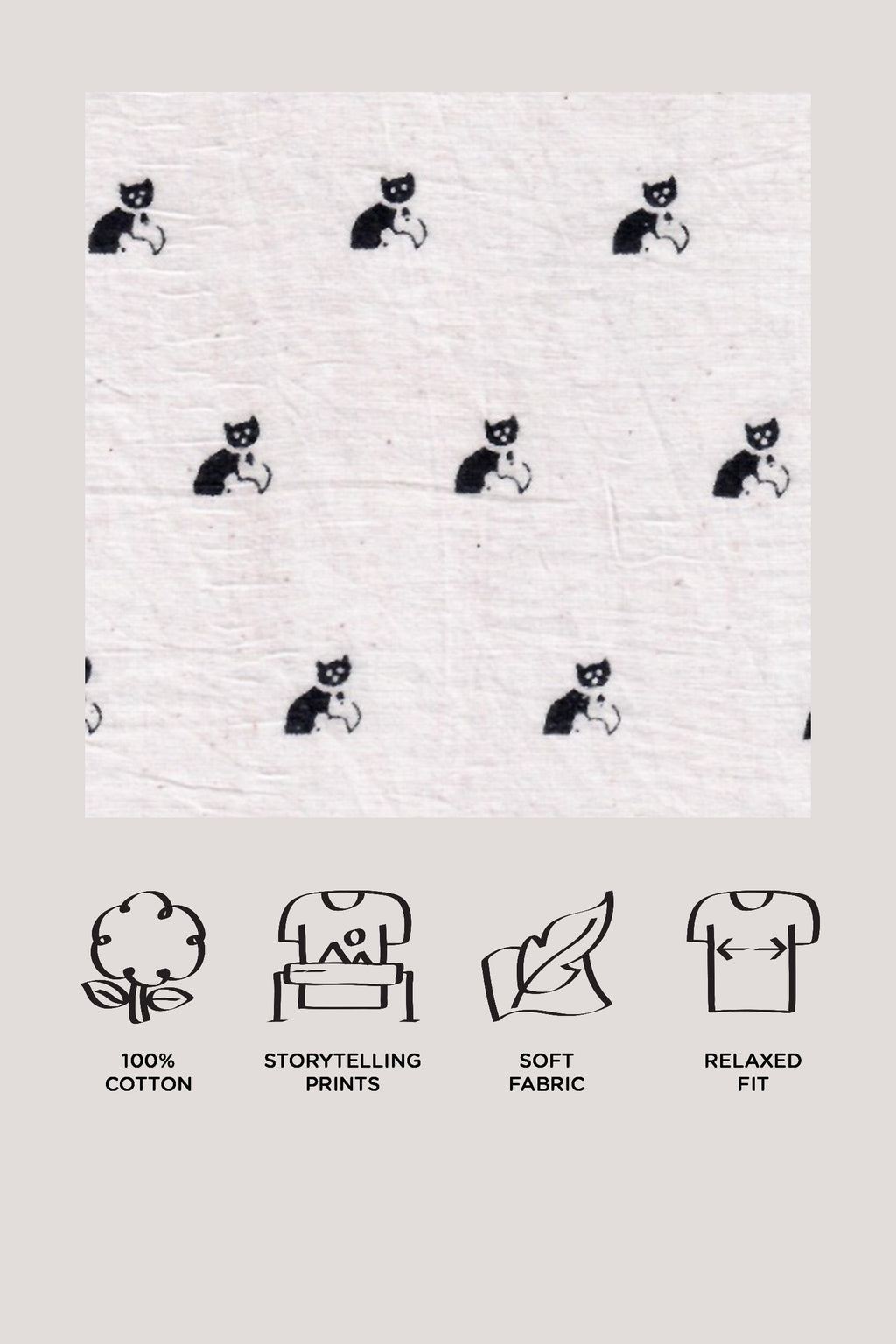 Cotton Kids Sleepwear with Two Cats & Monkey Story print