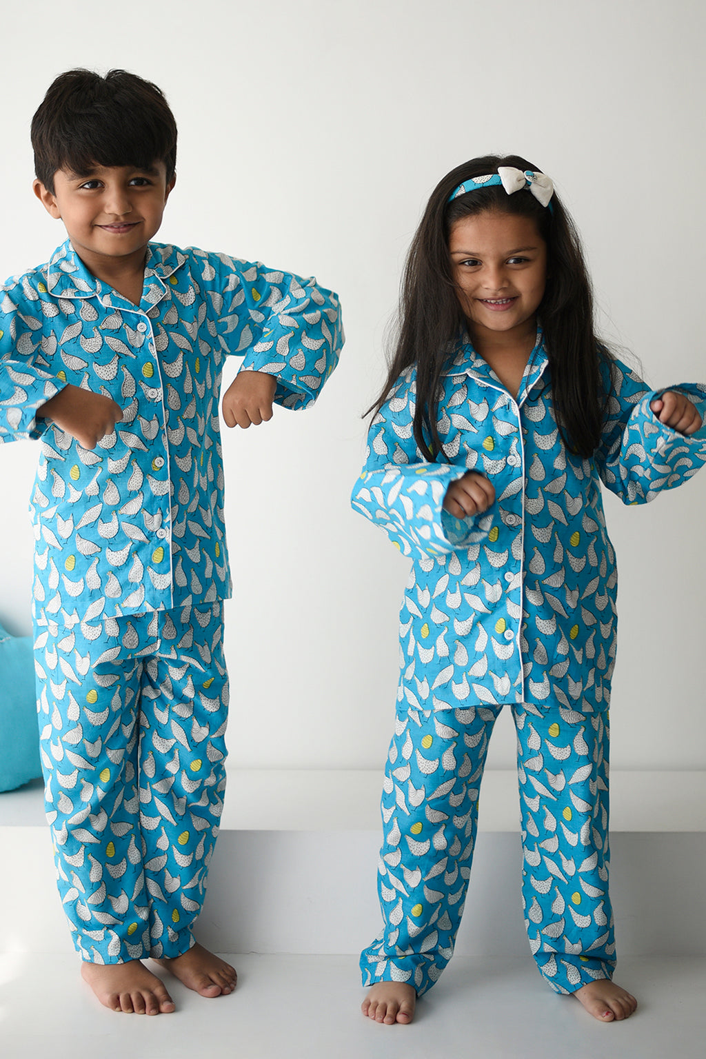Unisex Single Set Cotton Kids Sleepwear with Hen that laid Golden Egg Story Print (1 top & 1 Bottom)