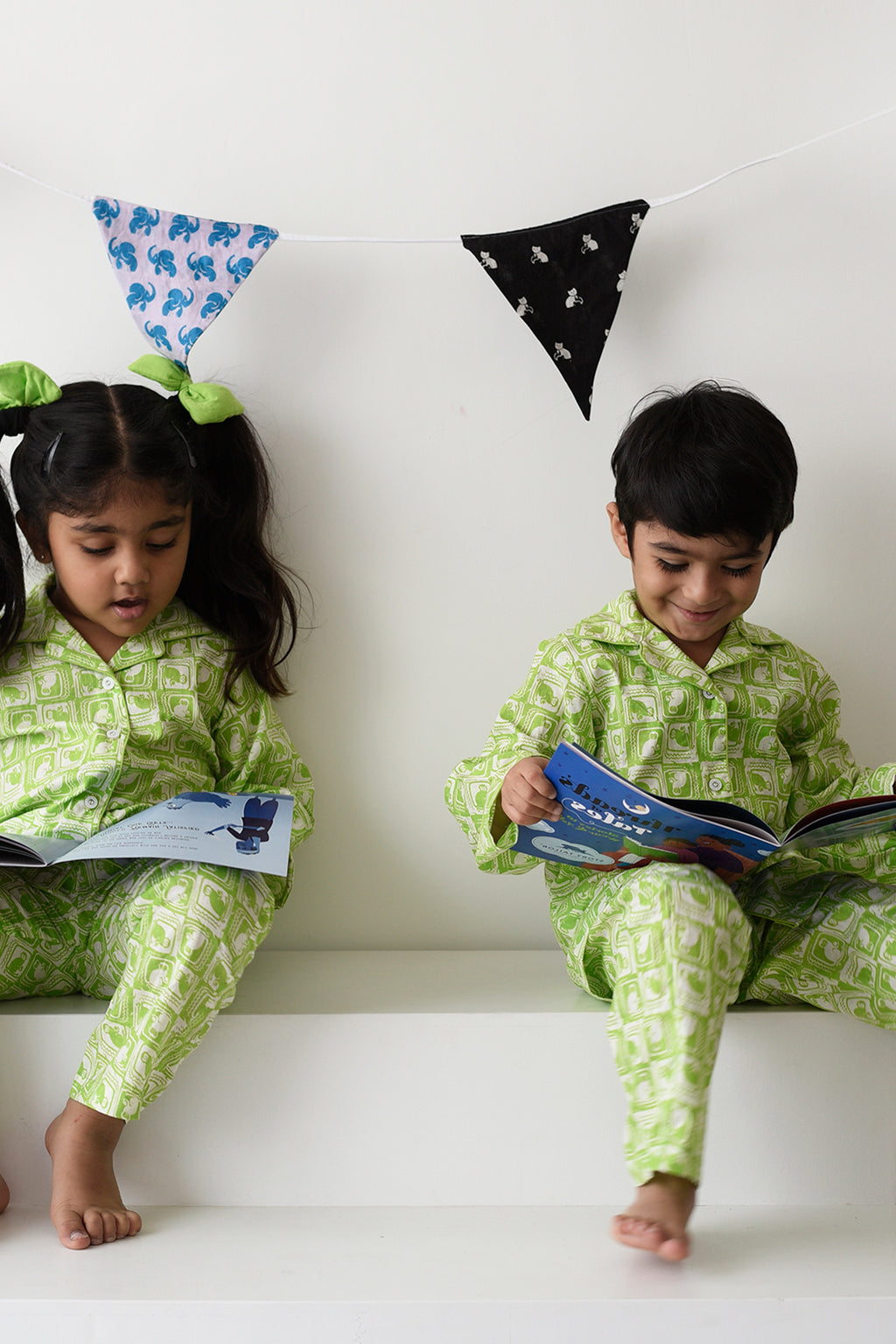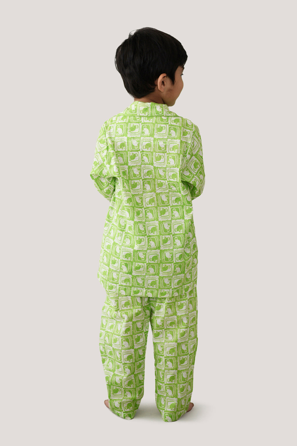 Unisex Single Set Cotton Kids Sleepwear with The Monkey & The Crocodile Story print (1 Top & 1 Bottom)