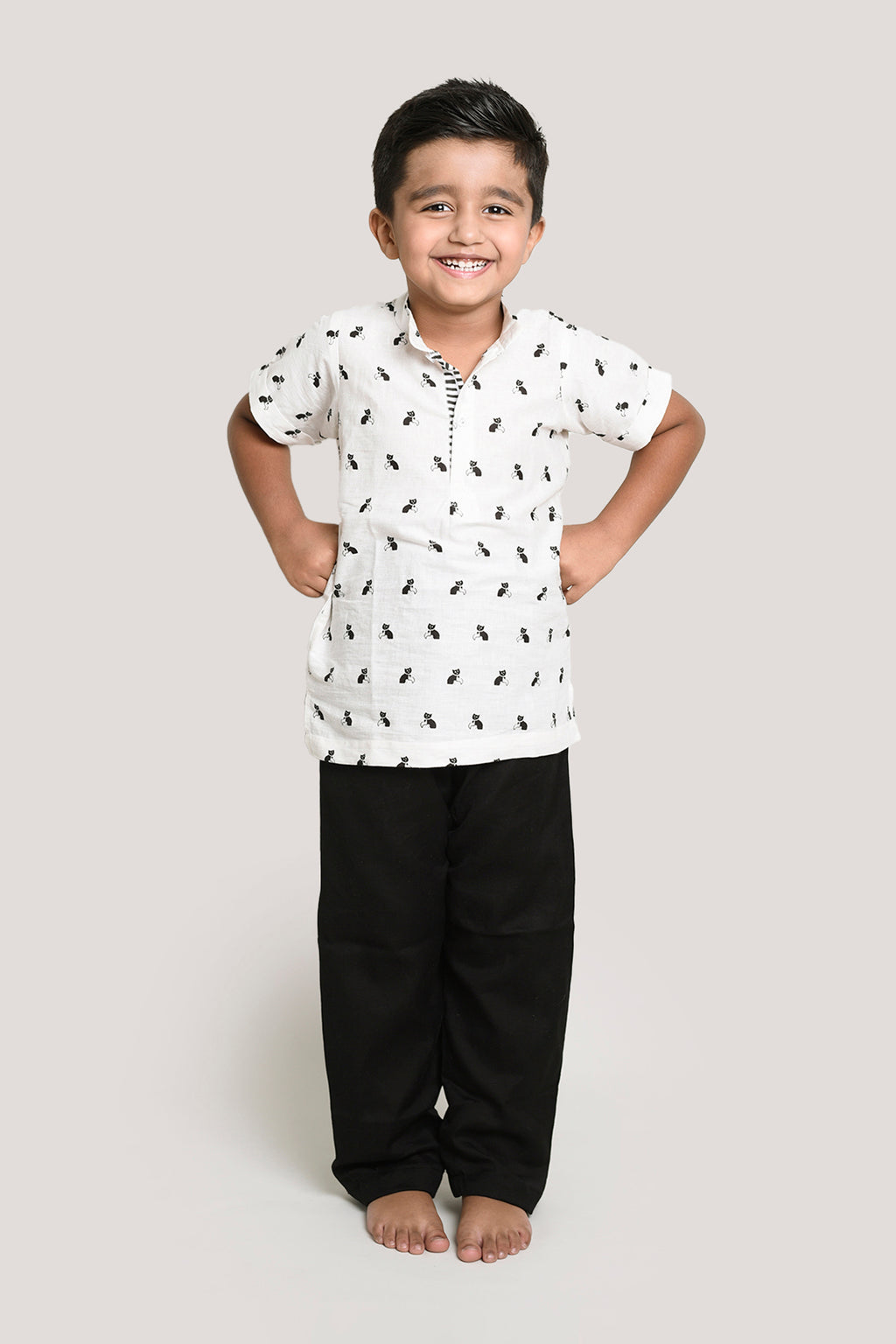 Cotton Kids Sleepwear with Two Cats & Monkey Story print