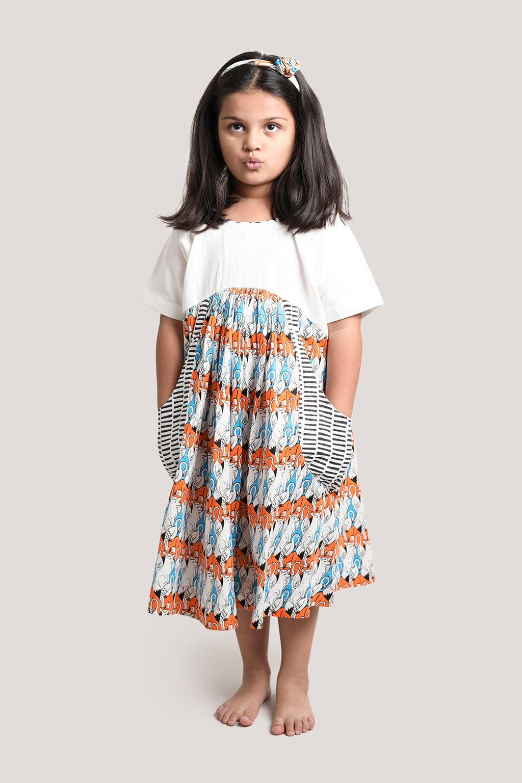 Yoke Frock with half white and half print